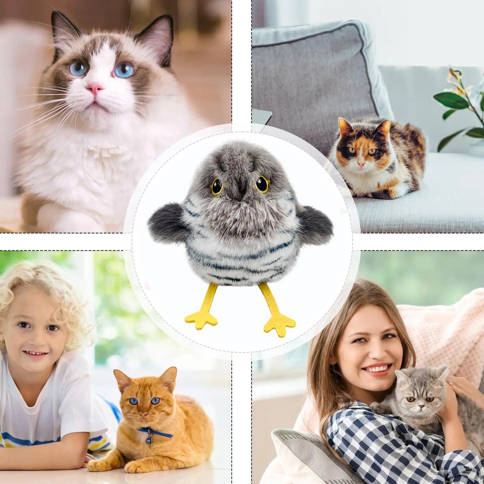 Echt een succes in huis! Mijn kat speelt er dagelijks mee en draagt het vogeltje zelfs rond. De combinatie van beweging, geluid en zachte stof werkt super goed. Ook leuk dat er meerdere soorten vogeltjes zijn om af te wisselen.